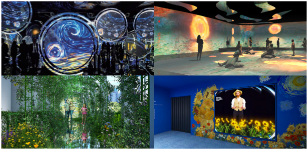 · 360° 环绕光影剧场:5 米高的屏幕铺满墙面与地面,印象派的画作在光影中舒展,搭配贴合情绪的音乐,观众仿佛 “走入” 画中 —— 亲临“日出”的海港感受水影交融,置身 “麦田”轻抚乡野烂漫;